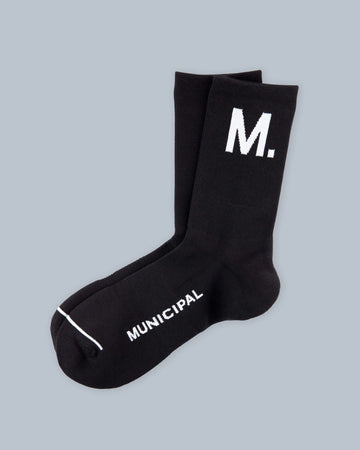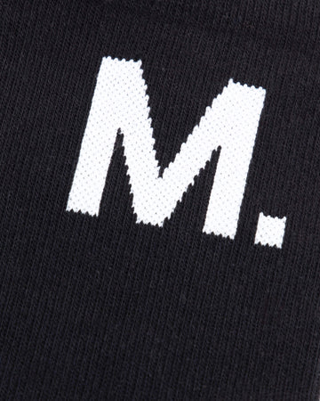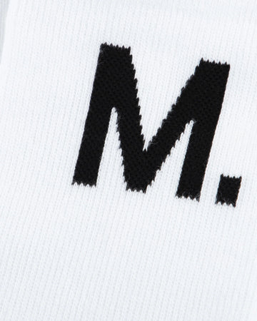 - M. logo printed on outside of each sock